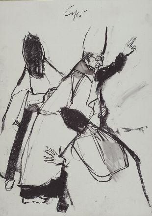Nino Caffè (Alfredina, 1909 - Pesaro, 1975) CARDINALE Carboncino su carta, cm. 49,5x34,5 Firma in alto al centro.
