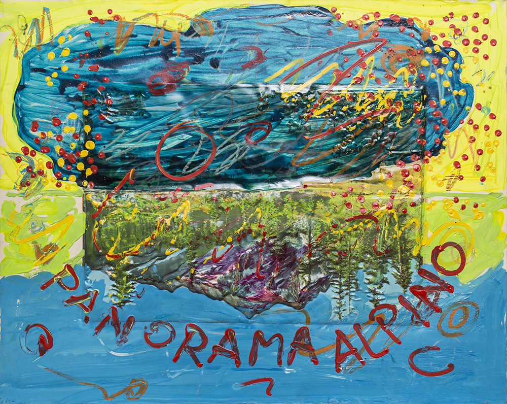 ENRICO MANERA (1947) Panorama alpino Olio, tecnica mista e applicazioni su...