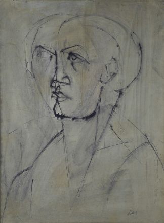 Gianni Dova (Roma, 1925 - Pisa, 1991) VOLTO China su carta riportata su...