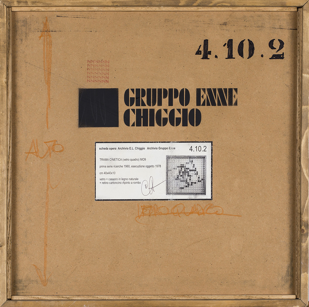 Scheda opera di Archivio E.L. Chiggio Archivio Gruppo Enne n. 4.10.2 con firma dell'Artista e caratteristiche tecniche dell'opera al retro
