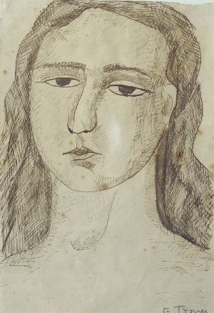 Fiorenzo Tomea (Zoppé di Cadore, 1910 - Milano, 1960) VOLTO FEMMINILE China su carta, cm. 25,5x17,5 Firma in basso a destra