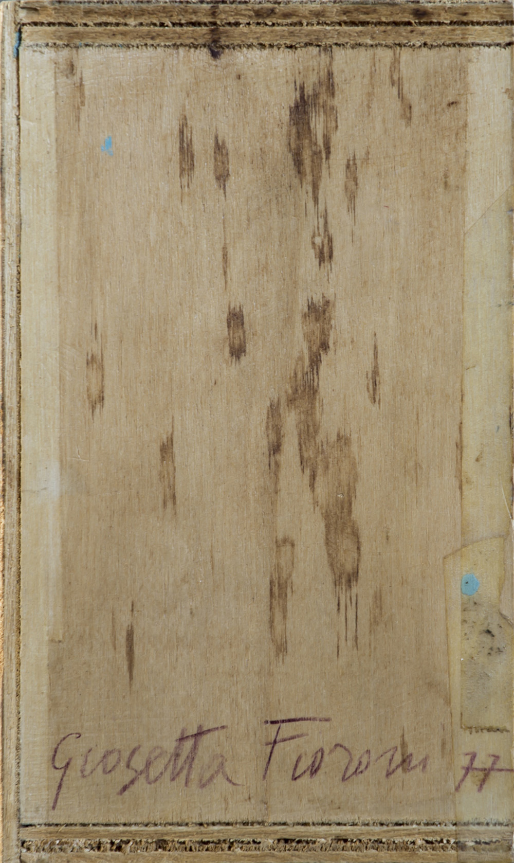 Iscrizione “Prezzo L. 250.000 Via Zoccolette 11 Roma” a matita al retro