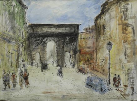 Michele Cascella (Ortona, 1892 - Milano, 1989) STRADA PARIGINA Tecnica mista...