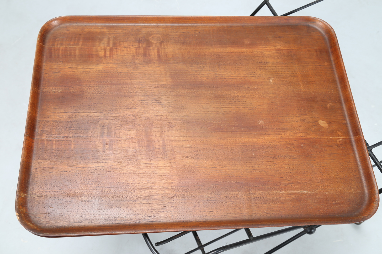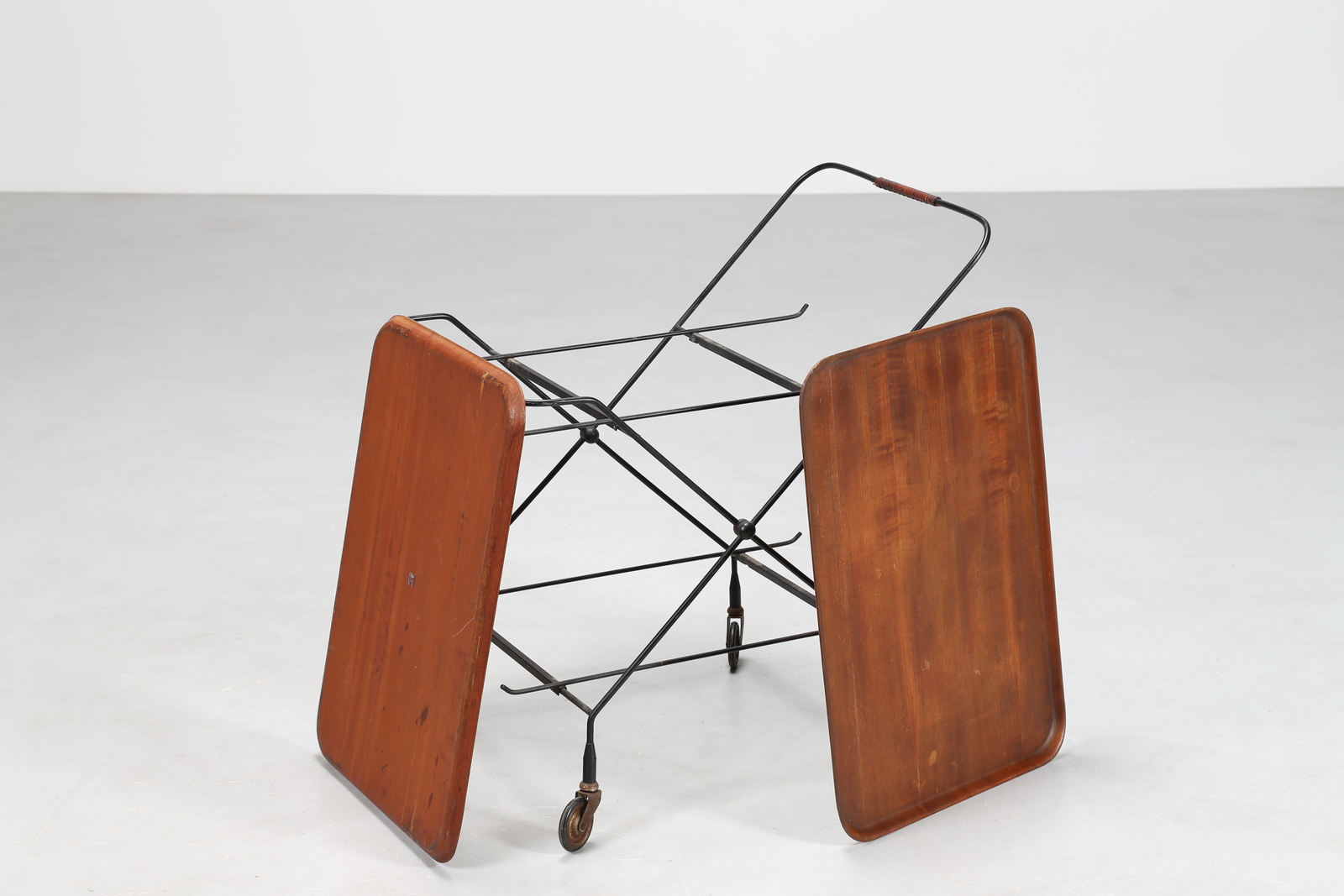 ISA BERGAMO Carrello in legno di teak e tondino di ferro laccato con vassoi estraibili, anni 50. -. Cm 66,00 x 70,00 x 50,00. Etichetta sotto i ripiani