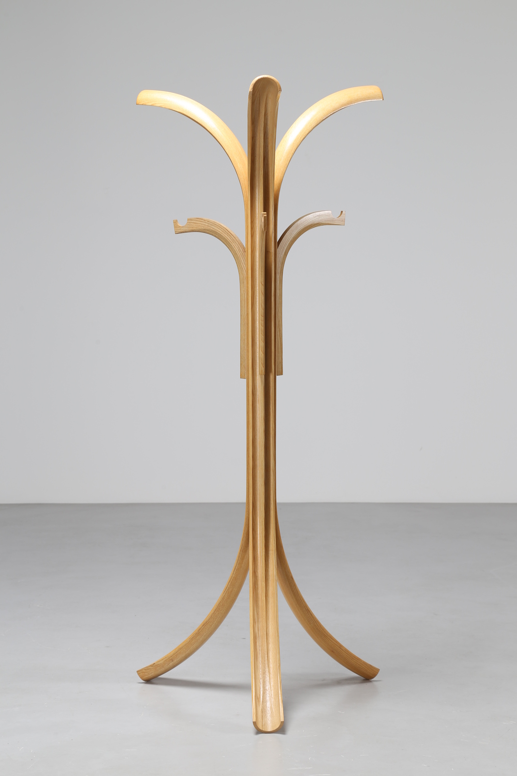 OFFREDI GIOVANNI (n. 1927) Attaccapanni in frassino curvo, per Crassevig, anni 70. Legno di frassino. Cm 71,00 x 165,00 x 71,00.