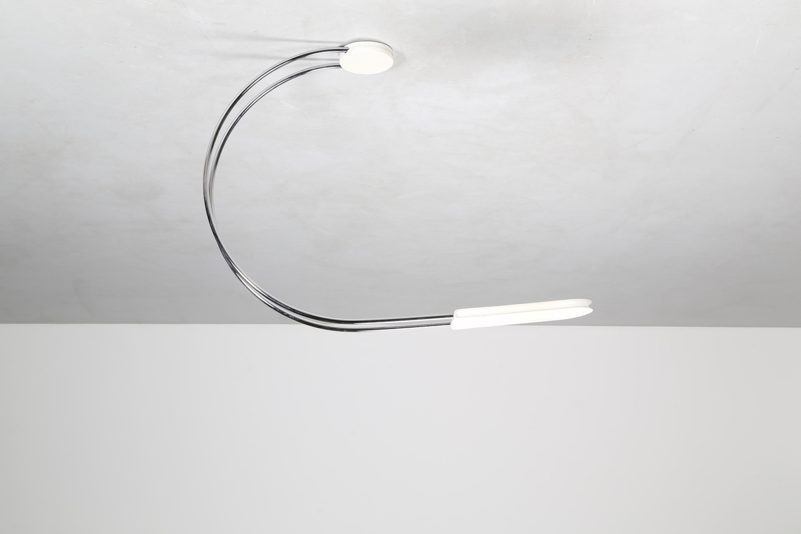 GECCHELIN BRUNO (n. 1939) Lampada da tavolo in acciaio tubolare cromato, metallo laccato, legno laccato, mod. Gesto per Skipper, anni 70 . -. Cm 18,50 x 125,00 x 97,00.