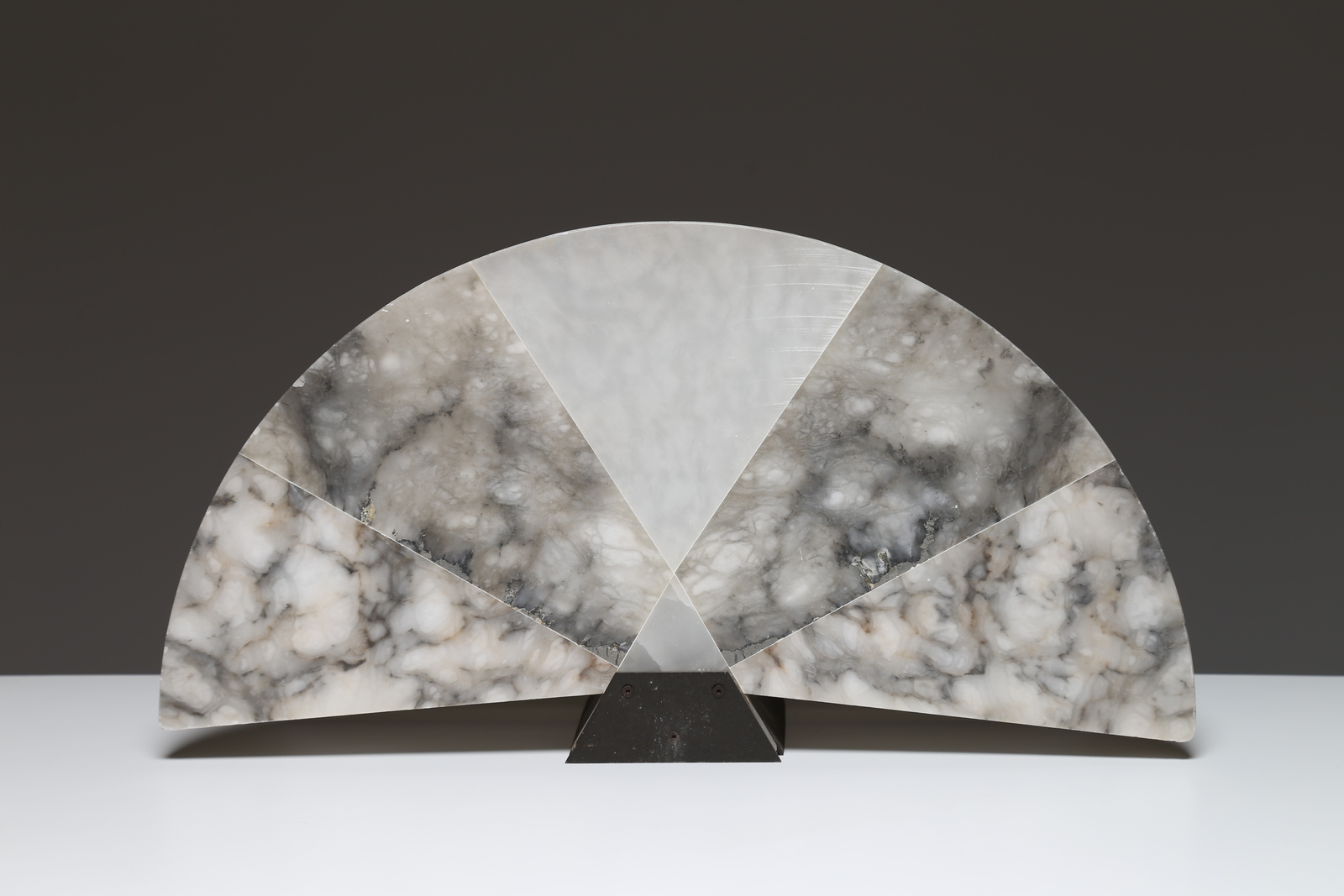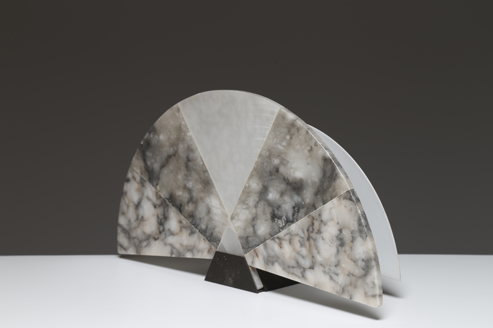 MANGIAROTTI ANGELO (n. 1921) Lampada da tavolo a ventaglio in alabastro e metallo verniciato, per SKIPPER POLLUX. Anni '80. . -. Cm 27,00 x 50,00 x 12,00.