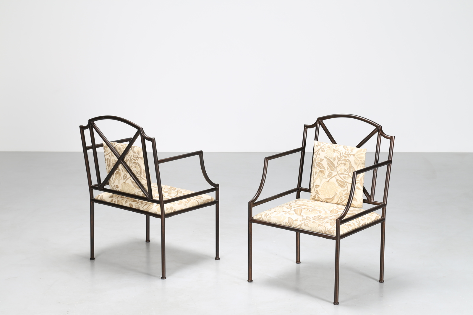BANCI GIOVANNI Coppia di poltrone in ferro e tessuto, anni 70. -. Cm 57,50 x...