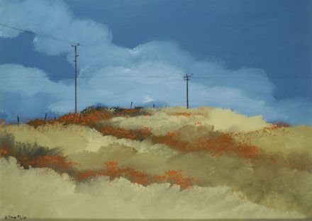 Enotrio Pugliese (Buenos Aires, 1920 - Pizzo Calabro, 1989) CAMPO DI GRANO Olio su compensato, cm. 50x70 Firma in basso a sinistra. Sul verso: firma, titolo e timbro Galleria d’Arte la Barcaccia, Chianciano Terme.