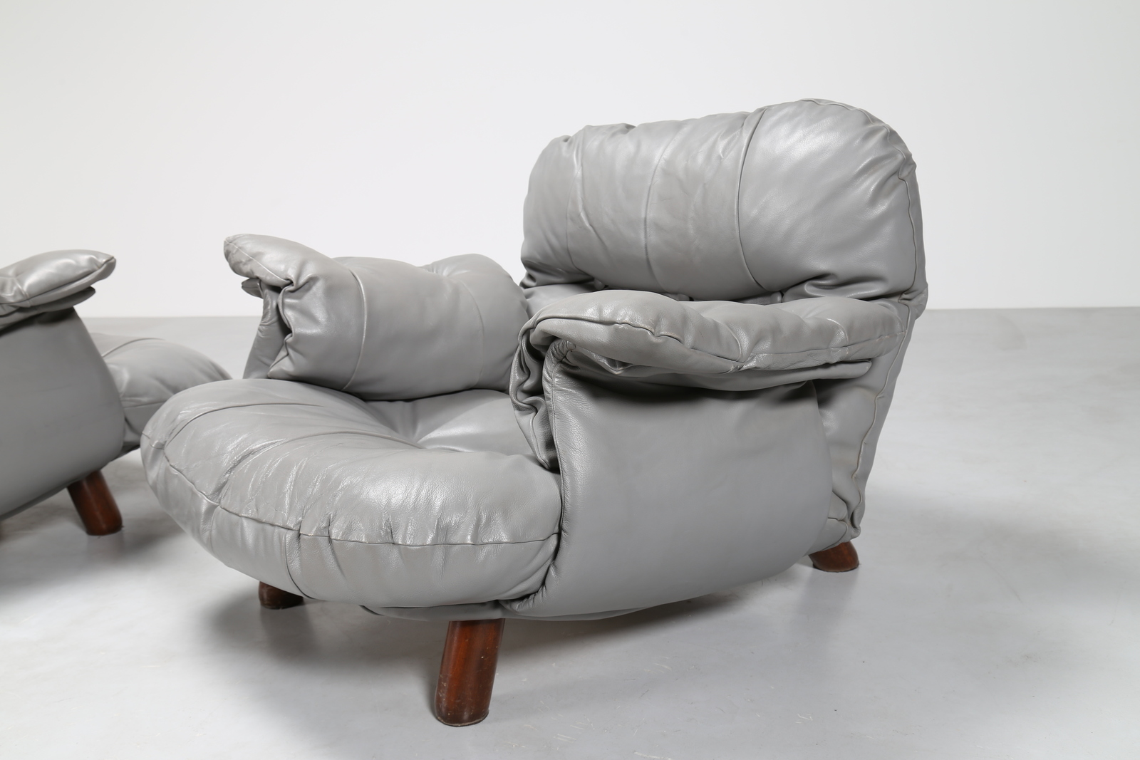LAFER PERCIVAL Attrib. coppia di poltrone in legno e pelle, anni 60 . -. Cm...