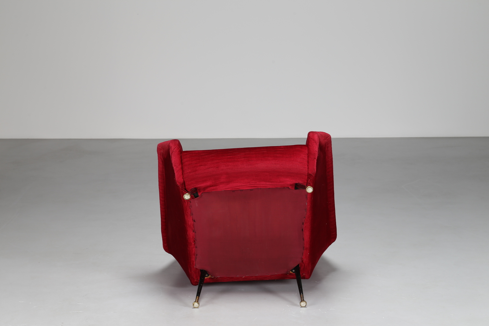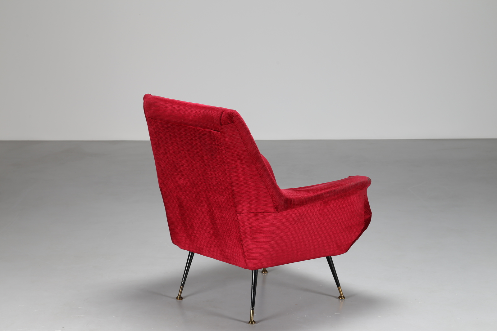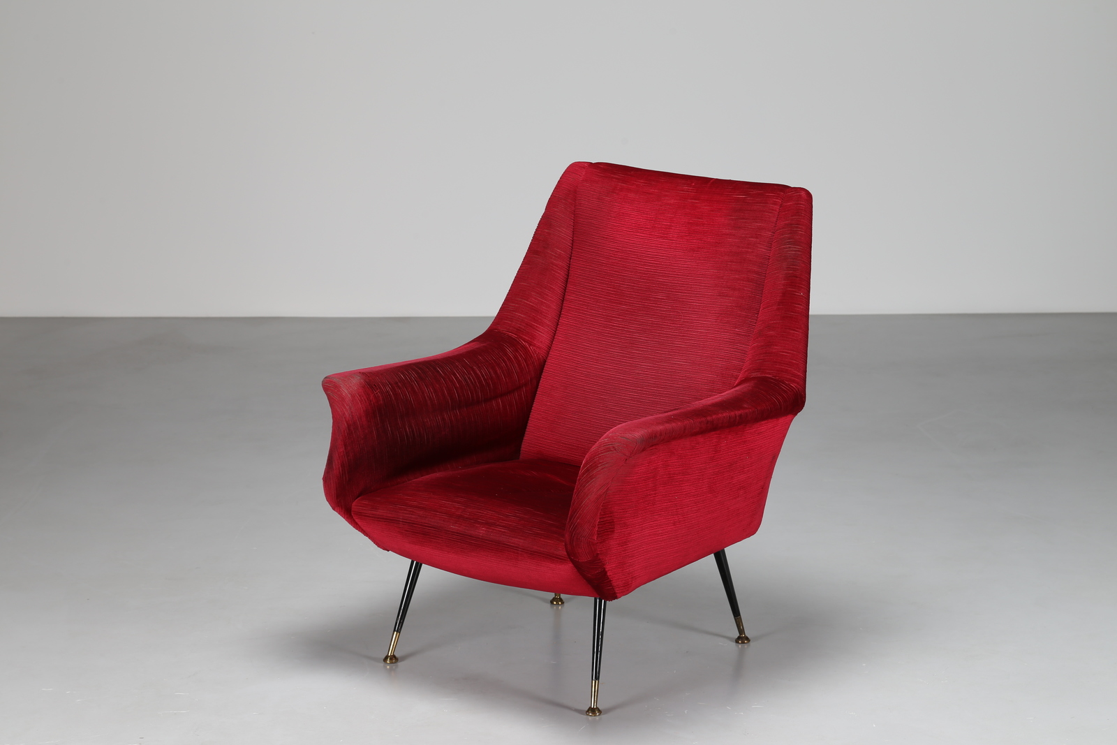 MANIFATTURA ITALIANA Poltrona in tessuto e ottone laccato, anni 50 . . Cm 81,00 x 91,00 x 75,00.