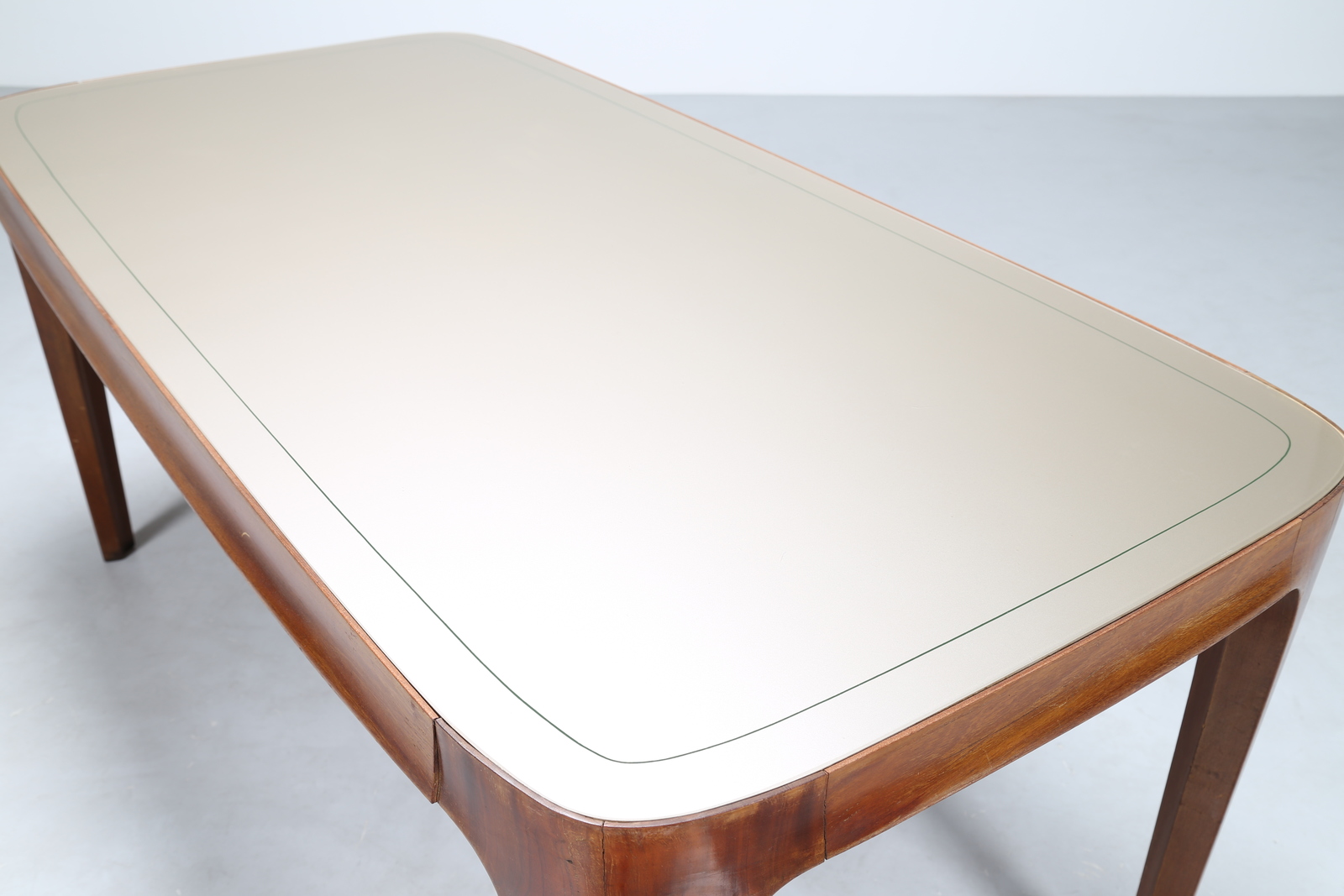 MANIFATTURA ITALIANA Tavolo in noce nazionale con piano in vetro, anni 50°. -. Cm 175,00 x 80,00 x 88,00.