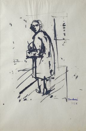 Orfeo Tamburi (Jesi, 1910 - Parigi, 1994) IL PITTORE DI SPALLE, 1938 China su carta, cm. 30x19,5 Firma e data in basso a destra. Autentica dell’autore su foto.