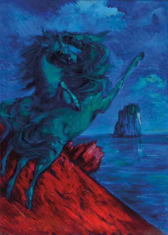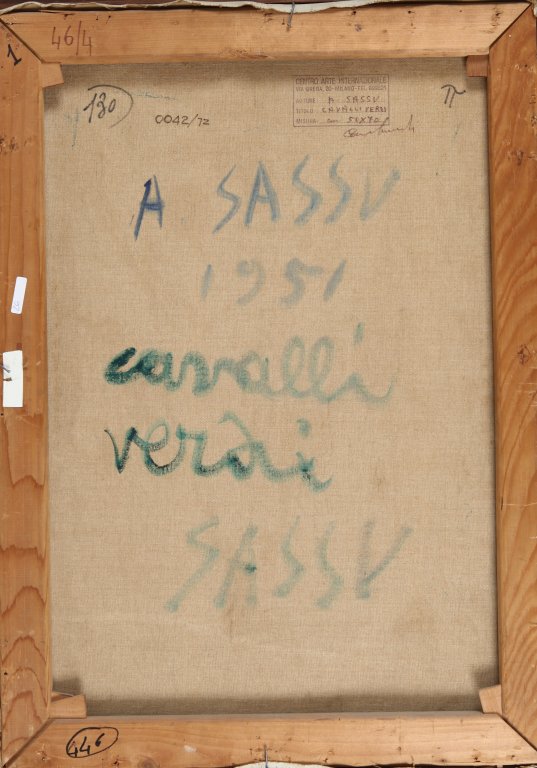 ALIGI SASSU (1912-2000) Cavalli Verdi 1951olio su tela cm 70x50firmato in...