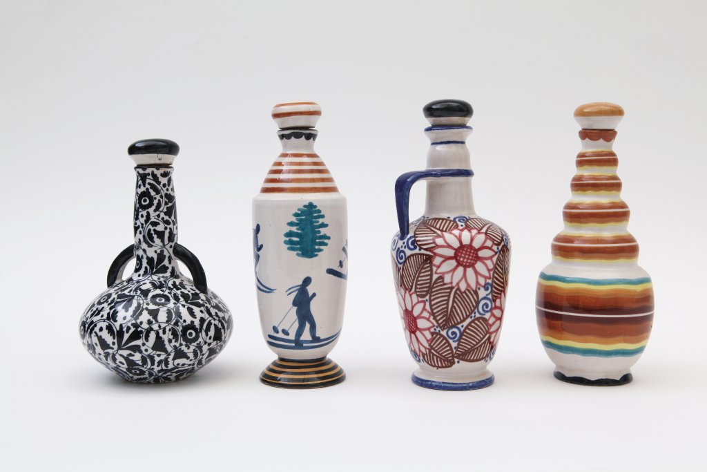 Lotto 1056 | CCM, FAVENZIA ARSUn insieme di 4 bottiglie da liquore, anni" 30. Modelli...