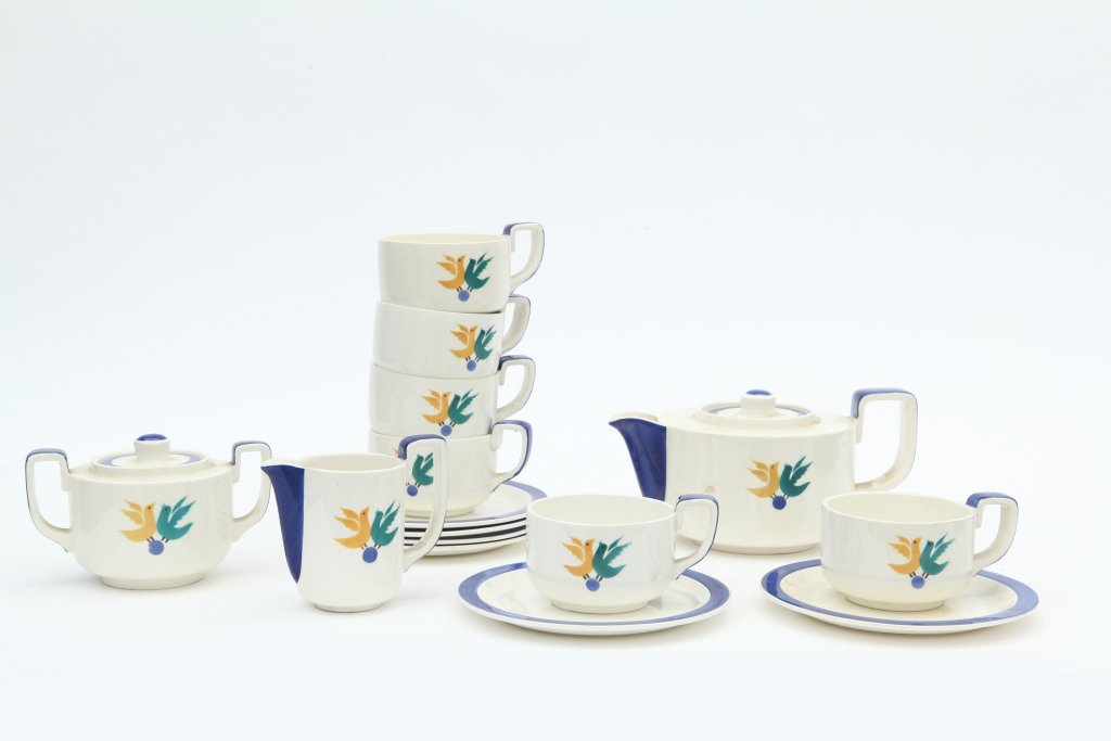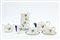 Composto da 6 tazzine, 6 piattini, caffettiera, zuccheriera e lattiera.