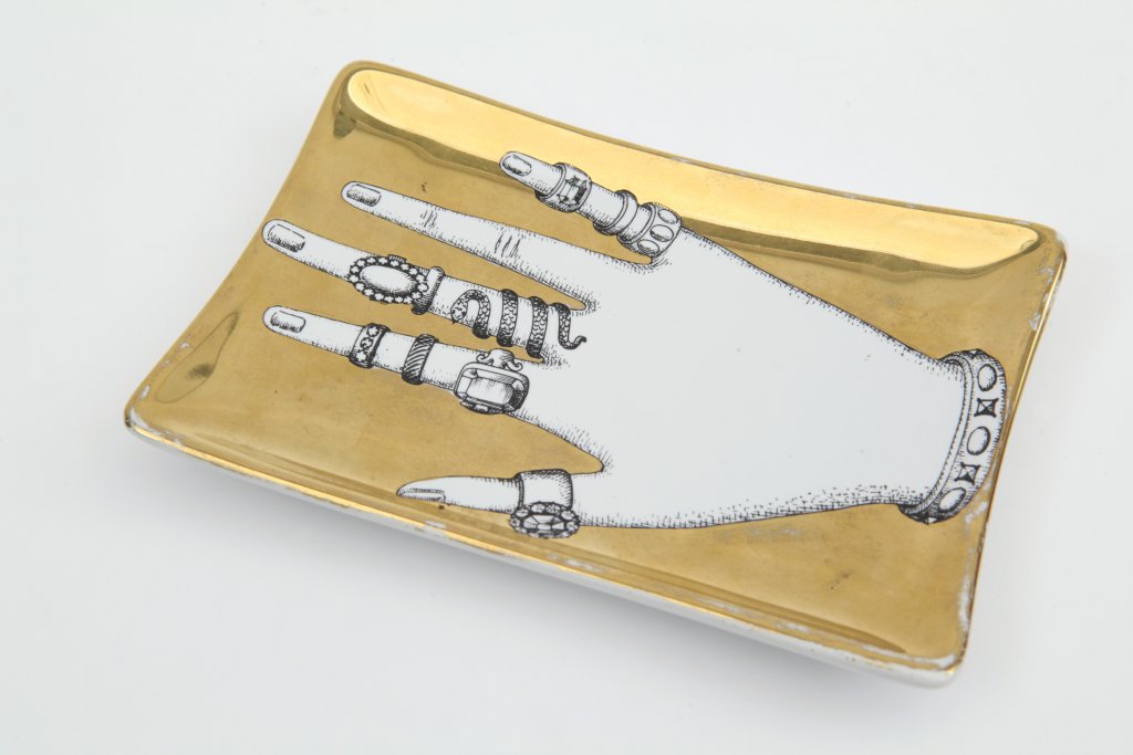 PIERO FORNASETTIUn posacenere foglio, decoro "Mano inanellata", anni "60....