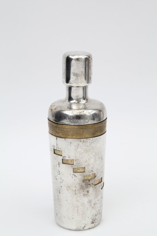 UNO SHAKER, anni "30. Metallo argentato, ottone. Marcato "Metalart". Altezza...