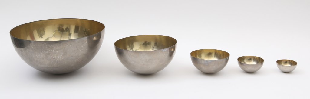 IL PUNTO (Editore)Un insieme di 5 coppe emisferiche, anni "70Metallo...