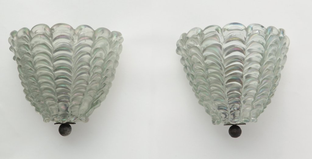BAROVIER & TOSO Due lampade a parete, anni "40. Ferro verniciato, vetro...