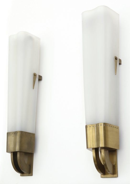 GRECO, Milano (Editore)Due lampade a parete, anni "50. Ottone, perspex,...