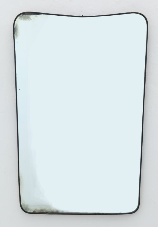 UNO SPECCHIO DA PARETE, anni "50. Ottone, cristallo argentato. Cm 118 x 78.