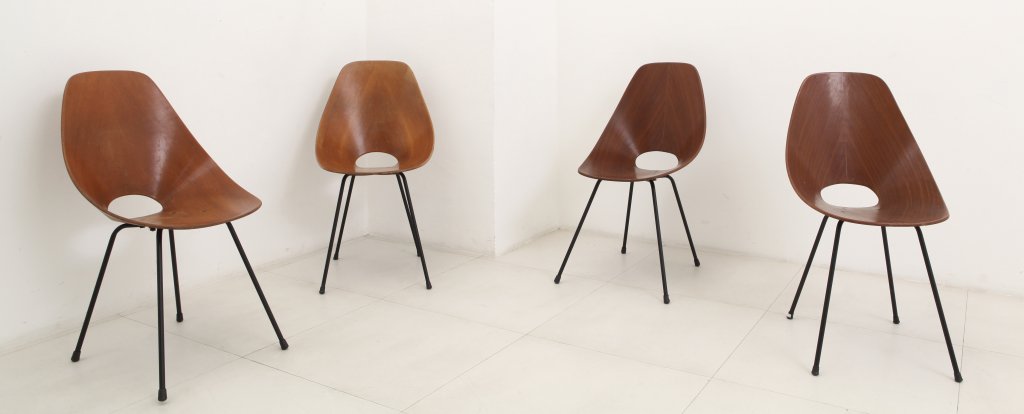 Quattro sedie "Medea" per FRATELLI TAGLIABUE, 1955.