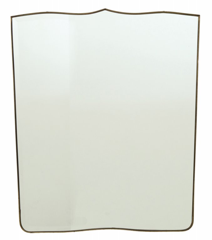 UNO SPECCHIO DA PARETE, anni "50. Ottone, cristallo argentato. Cm 104 x 87.