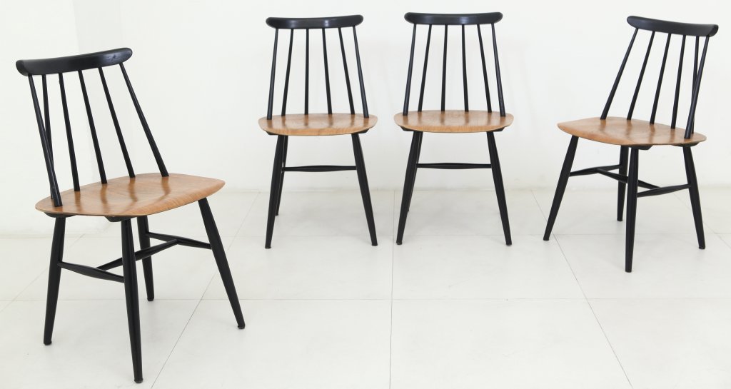 Lotto 1280 | QUATTRO SEDIE, anni "50. Legno verniciato, compensato curvato di teak....