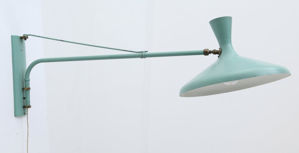 UNA LAMPADA A PARETE, anni "50. Tubo di ferro verniciato, ottone, alluminio...