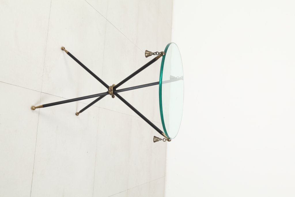 Lotto 1284 | UN TAVOLINO DI SERVIZIO, anni "50. Ottone, ferro verniciato, cristallo...