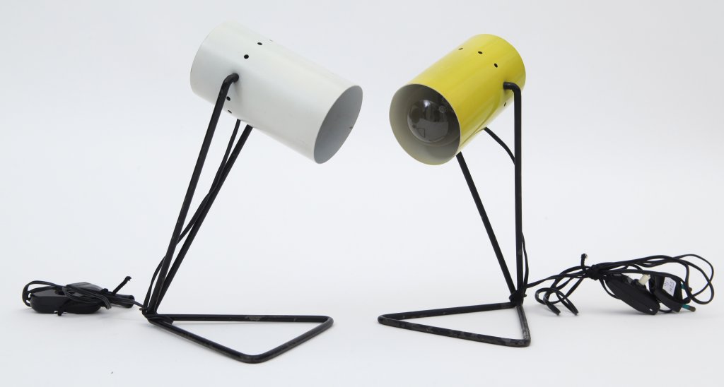 DUE LAMPADE DA TAVOLO, anni "50. Tondino di ferro piegato e verniciato,...
