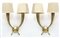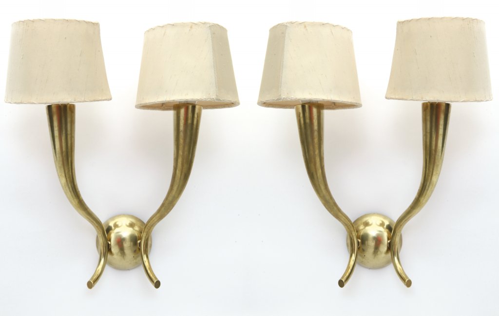 DUE LAMPADE A PARETE, anni "50. Ottone, paralumi di seta. Altezza cm 30,...