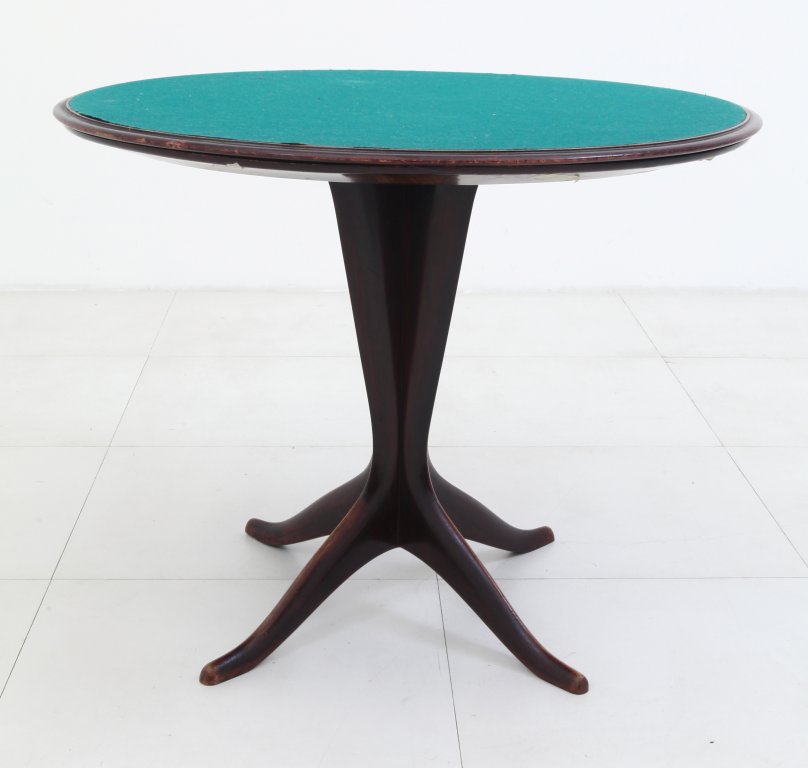 UN TAVOLO DA GIOCO, anni "50. Legno di palissandro, legno impiallacciato In...