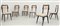 SEI SEDIE, anni "50. Legno di mogano, sedute e schienali imbottiti rivestiti...