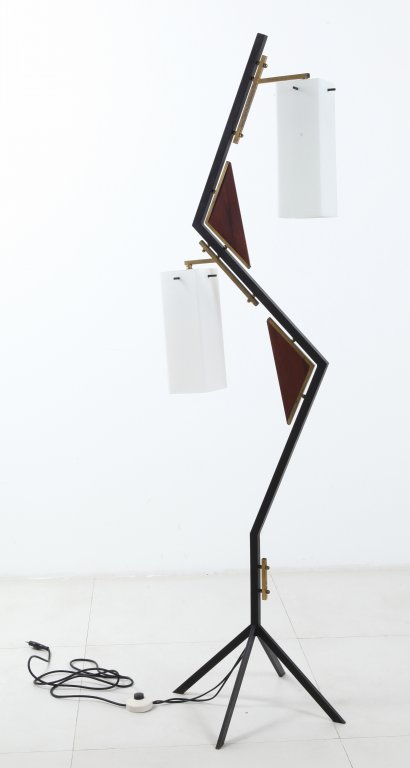 UNA LAMPADA DA TERRA, anni "60. Ferro verniciato, ottone, compensato di teak,...
