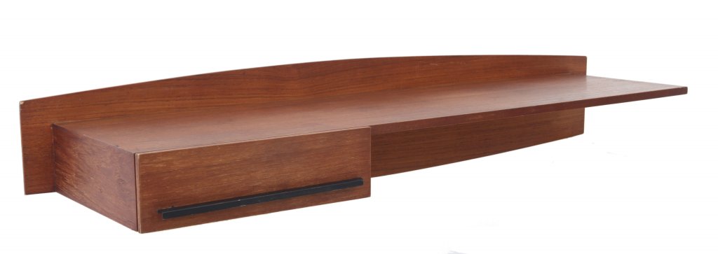 UNA CONSOLE PENSILE, anni "60. Legno impiallacciato in teak, metallo...