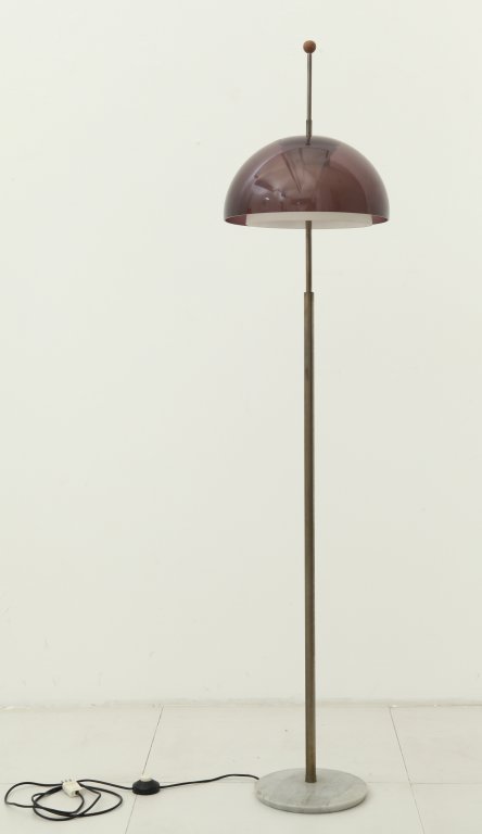UNA LAMPADA DA TERRA, anni "60. Marmo, ottone cromato, legno tornito, vetro...