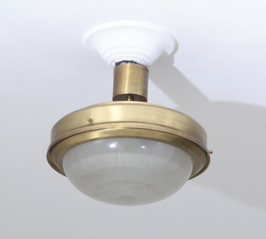 UNA LAMPADA DA SOFFITTO, anni "60. Ottone, vetro stampato. Altezza cm 25,...