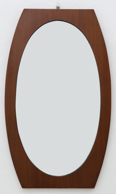 UNO SPECCHIO DA PARETE, anni "60. Legno impiallacciato in teak, cristallo...