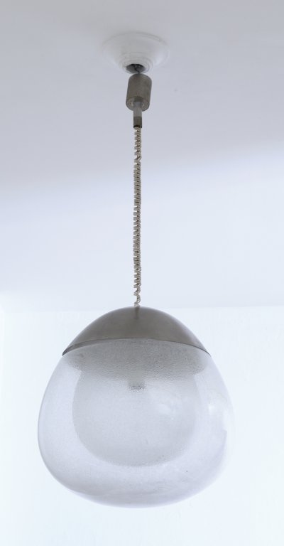 Lotto 1376 | MAZZEGAUna lampada a sospensione, anni "60. Lamierino nichelato, vetro a...