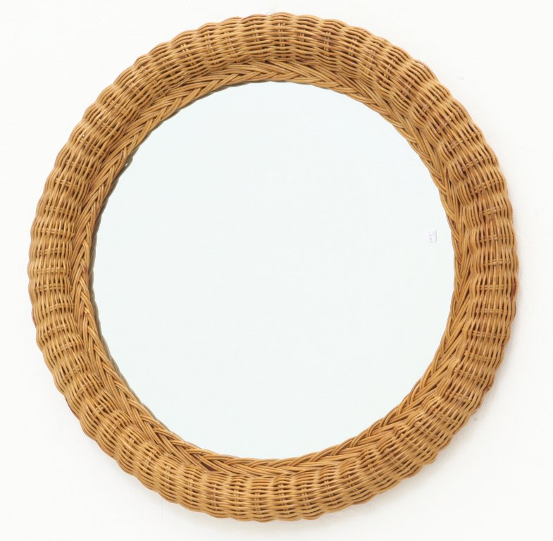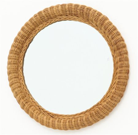 UNO SPECCHIO DA PARETE, anni "60. Midollino, cristallo argentato. Diametro cm...