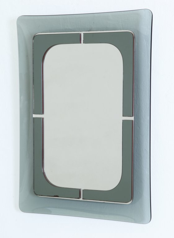 Lotto 1393 | UNO SPECCHIO DA PARETE, anni "60. Cristallo colorato curvato, cristallo...