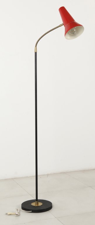 UNA LAMPADA DA TERRA, anni "60. Ghisa verniciata, ottone, tubo di ferro...