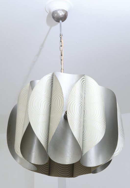 RENZO BURCHIELLARO Una lampada a sospensione, anni "60. Fogli di alluminio...