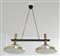 UNA LAMPADA A SOSPENSIONE, anni "60. Ottone, alluminio laccato, vetro...