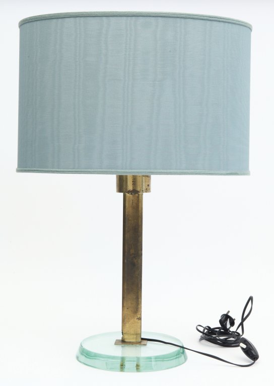 UNA LAMPADA DA TAVOLO, anni "40. Cristallo molato, ottone, paralume in...