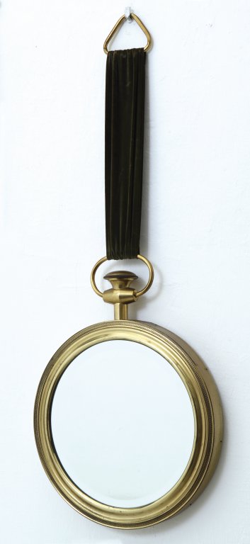 Lotto 1433 | UNO SPECCHIO DA PARETE, anni "60. Ottone, cristallo argentato, sospensione in...