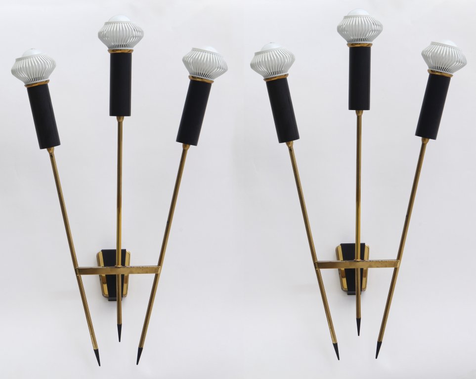 LUMI, Milano (Editore) Due lampade a parete, anni "60. Ottone, ferro...