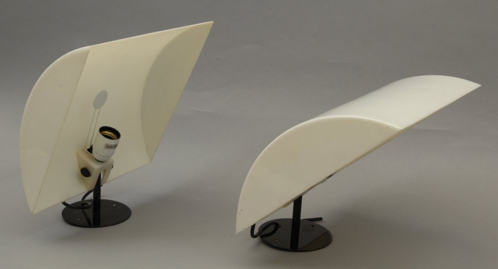 LUCI (Editore)Due lampade a parete, anni "60. Acciaio verniciato, perspex....